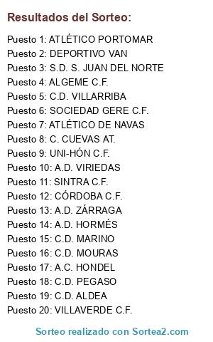 Lista de participantes: A.C. HONDEL, A.D. HORMÉS, A.D. VIRIEDAS, A.D. ZÁRRAGA, ALGEME C.F., ATLÉTICO DE NAVAS, ATLÉTICO PORTOMAR, C. CUEVAS AT., C.D. ALDEA, C.D. MARINO, C.D. MOURAS, C.D. PEGASO, C.D. VILLARRIBA, CÓRDOBA C.F., DEPORTIVO VAN, S.D. S. JUAN DEL NORTE, SINTRA C.F., SOCIEDAD GERE C.F., UNI-HÓN C.F., VILLAVERDE C.F..
