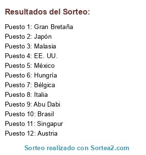 Resultados del sorteo: