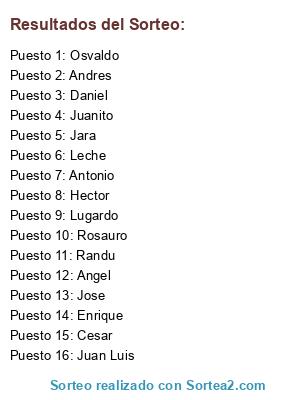 Lista de participantes: Juan Luis, Lugardo, Hector, Leche, Osvaldo, Cesar, Antonio, Andres, Enrique, Juanito, Daniel, Rosauro, Angel, Jose, Randu, Jara.