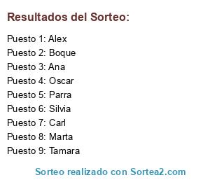 Lista de participantes: Oscar, Carl, Parra, Tamara, Silvia, Alex, Boque, Ana, Marta.