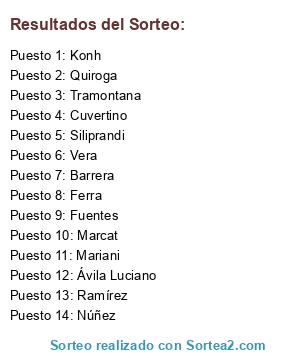 Lista de participantes: Ramírez, Fuentes, Siliprandi, Barrera, Ávila Luciano, Cuvertino, Marcat, Núñez, Quiroga, Tramontana, Vera, Ferra, Mariani, Konh.