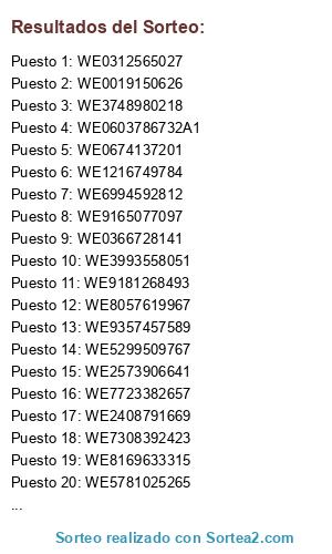 Este sorteo ha sido certificado por Sortea2. Sortea2 garantiza que: