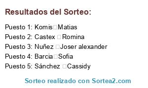 Resultados del sorteo: