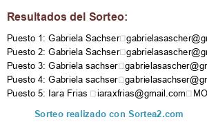 - 1 VOUCHER $ 20.000.- : Gabriela Sachser gabrielasascher@gmail.com Verte Crecer