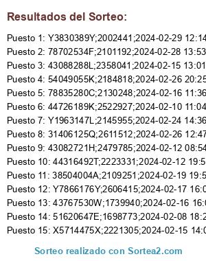 - 2024-03-08 12:41:34 (GMT): Se ejecuta el sorteo