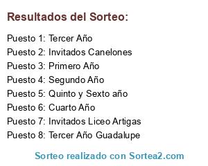 Lista de participantes: Primero Año, Segundo Año, Tercer Año, Tercer Año Guadalupe, Cuarto Año, Quinto y Sexto año, Invitados Canelones, Invitados Liceo Artigas.