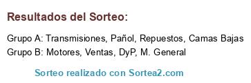 Lista de participantes: Pañol, Camas Bajas, Ventas, DyP, Transmisiones, Repuestos, Motores, M. General.