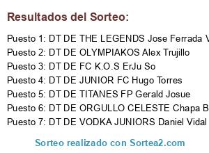 Lista de participantes: DT DE TITANES FP Gerald Josue, DT DE ORGULLO CELESTE Chapa Bravo, DT DE FC K.O.S ErJu So, DT DE OLYMPIAKOS Alex Trujillo, DT DE JUNIOR FC Hugo Torres, DT DE THE LEGENDS Jose Ferrada Vidal, DT DE VODKA JUNIORS Daniel Vidal.