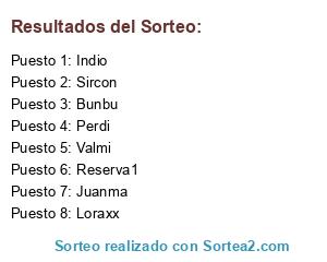 Lista de participantes: Perdi, Valmi, Loraxx, Indio, Juanma, Sircon, Bunbu, Reserva1.