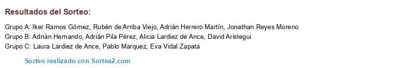 Lista de participantes: Adrián Herrero Martín, Alicia Lardiez de Ance, Laura Lardiez de Ance, Eva Vidal Zapata, David Aristegui, Adrián Pila Pérez, Rubén de Arriba Viejo, Pablo Marquez, Jonathan Reyes Moreno, Iker Ramos Gómez, Adrián Hernando.