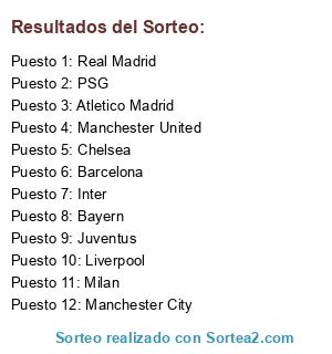 Resultados del sorteo: