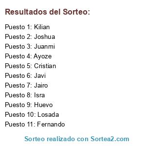 Lista de participantes: Joshua, Cristian, Losada, Javi, Fernando, Jairo, Isra, Ayoze, Juanmi, Huevo, Kilian.