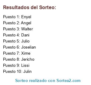 Lista de participantes: Lissi(10 participaciones), Xime(9 participaciones), Jericho(8 participaciones), Joselian(7 participaciones), Dani(6 participaciones), Enyel(5 participaciones), Walter(4 participaciones), Julin(3 participaciones), Julio(2 participaciones), Angel.