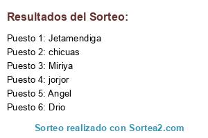 Lista de participantes: Angel, chicuas, Drio, Jetamendiga, jorjor, Miriya.