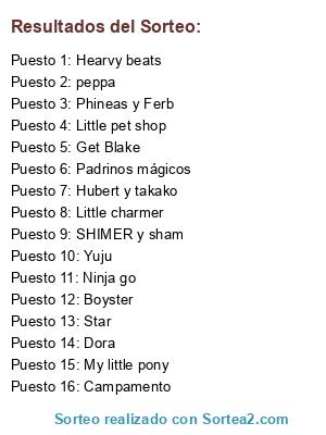 Lista de participantes: Star, peppa, Campamento, My little pony, Little charmer, Phineas y Ferb, Little pet shop, SHIMER y sham, Dora, Ninja go, Hearvy beats, Get Blake, Padrinos mágicos, Yuju, Hubert y takako, Boyster.