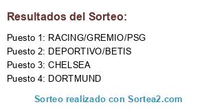 Lista de participantes: RACING/GREMIO/PSG, CHELSEA, DORTMUND, DEPORTIVO/BETIS.
