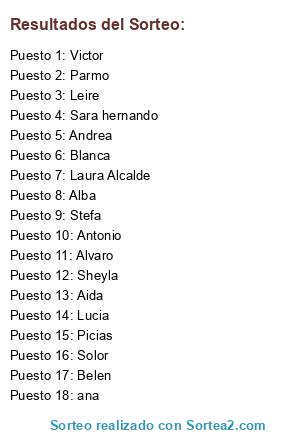 Lista de participantes: aida, Alvaro, ana, andrea, Alba, Antonio, Belen, Blanca, Laura Alcalde, Leire, Parmo, Picias, Sara hernando, Sheyla, Victor, Elena, Solor, stefa, Lucia.