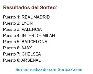 Lista de participantes: INTER DE MILAN, AJAX, CHELSEA, REAL MADRID, BARCELONA, ARSENAL, VALENCIA, LYON.