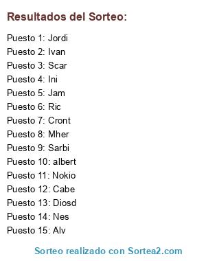 Lista de participantes: albert, Ini, Scar, Nokio, Sarbi, Cabe, Alv, Diosd, Ric, Nes, Jam, Ivan, Jordi, Mher, Cront.