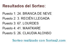 Lista de participantes: 1. GADIRROJA, 2. ERICA BELLVIS, 3. RECIÉN LLEGADA, 4. 4 ESTILOS, 5. SPEEK HEEL ADDICTION, 6. ATLANTERRA, 7. PATRICIA, 8. MARIMAR, 9. SECRETOS DE BELLEZA, 10. MISS POTINGUES, 11. DÉBORA, 12. NAOKO, 13. NYU, 14. VIRGY, 15. QUILOOK, 16. JENNY, 17. TETÉ VALERO, 18. EMMA BV, 19. AKUKA, 20. COOL LIPE, 21. MARISA PALOP, 22. YOLANDA AGUADO FLOR, 23. LORENA, 24. BRANCA DE NEVE, 25. LOU, 26. CLAUDIA ALONSO, 27. ANAYSHA, 28. ALBA FERNÁNDEZ, 29. OLGA MARTÍN FERNAN, 30. MAKE UP NYNA, 31. CRISTINA KISS ME, 32. LOLA MINE, 33. CONFUSIÓN EN MADRID, 34. PAQUI KETGUSTAELROCE, 35. MARÍA JESÚS, 36. LUCIA TEJO, 37. SONIA HERRERO, 38. JADEH, 39. SARAH, 40. NINFITA28, 41. MAATKARE, 42. PITTUSSIA, 43. KUTXYSA, 44. SARUCHI78, 45. MARÍA MARTÍNEZ, 46. MARÍA AGUYÉ, 47. BEAUTY SAVES THE DAY, 48. ODAKLESAM, 49. PAQUIFERFLO, 50. SUSANA GARCÍA THE BEAUTY BLOG, 51. SUSU, 52. LAURA SDV, 53. ANA , 54. CALIPSO, 55. ELENA MONTERO, 56. RBK, 57. EL KATA, 58. PALU, 59. AMIGAS MAKEUP , 60. GAMAN SURU, 61. MARÍA EUGENIA, 62. ROSA, 63. MIRIAM GÓMEZ ROMÁN, 64. MARI MALVAL 56, 65. ANI, 66. MONIQUE, 67. LOURDES, 68. CON B DE BELLEZA, 69. ELISA MUÑOZ.