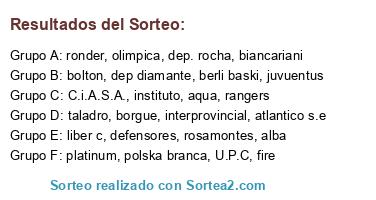 Lista de participantes: borgue, interprovincial, taladro, ronder, biancariani, platinum, juvuentus, C.i.A.S.A., U.P.C, instituto, liber c, bolton, aqua, atlantico s.e, rangers, fire, dep. rocha, alba, dep diamante, polska branca, defensores, berli baski, olimpica, rosamontes.