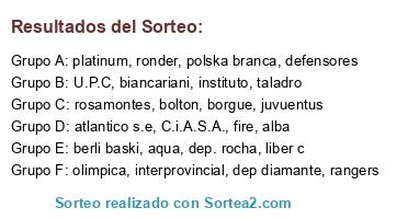 Lista de participantes: borgue, interprovincial, taladro, ronder, biancariani, platinum, juvuentus, C.i.A.S.A., U.P.C, instituto, liber c, bolton, aqua, atlantico s.e, rangers, fire, dep. rocha, alba, dep diamante, polska branca, defensores, berli baski, olimpica, rosamontes.