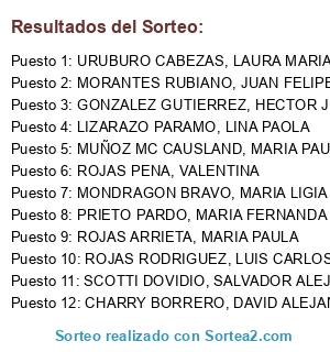 Lista de participantes: BELLO SARMIENTO, LAURA ELIZABETH, BENITEZ ACOSTA, KAREN ANDREA, CARDENAS MALAGON, CAROLINA, CARMONA AMOROCHO, GERMAN ANDRES, CARO BECERRA, ANDREA CAROLINA, CASTELLANOS FERNANDEZ, MARIANNA BEATRIZ, CEPEDA CORTES, LUZ ANGELA, CHARRY BORRERO, DAVID ALEJANDRO, CUFIÑO ZAMORA, DIANA CAROLINA, DIAZ PINILLA, NICOLAS, GARZON VIASUS, MARIA CAMILA, GOMEZ CHICRE, VANESSA ALEXANDRA, GONZALEZ GUTIERREZ, HECTOR JULIAN, GONZALEZ MOYA, DANNA LORENA, GOODING GEITHNER, CATHERINE, HERNANDEZ SANTOS, LORENA ESMERALDA, LEON ROMERO, VALERIA, LIZARAZO PARAMO, LINA PAOLA, MANTILLA BELTRAN, GABRIELA, MEDINA HERNANDEZ, JUAN CARLOS, MENDOZA ACEVEDO, WHENDY ALEJANDRA, MOJICA MUÑOZ, JUAN SEBASTIAN, MONDRAGON BRAVO, MARIA LIGIA, MORANTES RUBIANO, JUAN FELIPE, MOYA ACUÑA, DIANA MARIA, MUÑOZ MC CAUSLAND, MARIA PAULA, MUÑOZ SALCEDO, CARLOS ALBERTO, NONZOQUE , ALEJANDRA PAOLA, OROZCO MESA, SEBASTIAN, ORTIZ PERALTA, DANIELA, PACHON OLMOS, JULIANA ANDREA, PEDREROS SUAREZ, KAREN DAYANNA, PINEDA CORTES, LAURA DANIELA, PRIETO PARDO, MARIA FERNANDA, RAMIREZ OLAYA, ADRIANA MARIA, RAMOS ISAZA, ESTEFAN, RINCON SALGADO, LAURA **, ROA GONZALEZ, JULIAN MATEO, RODRIGUEZ DIAZ, AURA LUCIA, ROJAS ARRIETA, MARIA PAULA, ROJAS FAJARDO, JENNY PAOLA, ROJAS PENA, VALENTINA, ROJAS RODRIGUEZ, LUIS CARLOS, ROZO VARGAS, MARIO NICOLAS, SANCHEZ DIMATE, ANGIE VANESA, SAZA SALAS, LAURA DANIELA, SCOTTI DOVIDIO, SALVADOR ALEJANDRO, URUBURO CABEZAS, LAURA MARIA, ZAGHAB ZGIEB, FERAZ FADY, ZANNIN FERRERO, ANDREINA, ZAPATA LOVERA, LAURA FERNANDA.