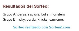 Lista de participantes: carneiros, knicks, bulls, ricky, parda, peras, monsters, raptors.