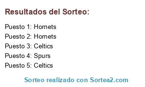Lista de participantes: Celtics(46), Hornets(41), Nets(56), Nuggets(29), Spurs(46).