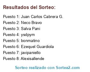 Lista de participantes: Juan Carlos Cabrera G. , ysdpym , Ezequel Guardiola , javipaniello , Alexisallende , Neco Bravo , Salva Pani , bonmatino.