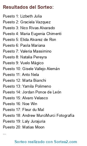 Lista de participantes: Flopi Borrilli, Erika Sierra, Luli Fazzito(3 participaciones), Laura Moreno, Paola Mariana(19 participaciones), Pablo Aguirre(3 participaciones), Claudia Alejandra Pintos(6 participaciones), Noe Win(4 participaciones), Jorge Santillán(6 participaciones), Silvia Carballo(2 participaciones), Ale Pedraza Guzman(11 participaciones), Negra Murguera, Tomas Otero(2 participaciones), Nico Fonticelli(2 participaciones), Valeria Massimino(3 participaciones), Lizbeth Julia(7 participaciones), Stella Monteros, Lautaro González(3 participaciones), Flor Saviotti(3 participaciones), Paula Garavaglia Martin, Dei Offspring(2 participaciones), Adabella Robotnik(9 participaciones), Jorge Gustavo Rios(9 participaciones), Romina Sandrini(2 participaciones), Adrian Vizcarra(3 participaciones), Verónica Moreno, Chabe Perez(2 participaciones), Verónica DEgan, Paula Eme(2 participaciones), Sarah Ebrahimi(2 participaciones), Elida Alvarez de Ron, Damian Juarez(3 participaciones), Nicolas Castañon(3 participaciones), Natalia Pereyra(6 participaciones), Caro Moreno(3 participaciones), Mariela DiScipio(2 participaciones), Gonzalo Ahumada, Noel Silletta(2 participaciones), Pau Guevara(3 participaciones), Graciela Vazquez(4 participaciones), Eduardo Mario Peralta, Vita Modesta(2 participaciones), Emanuel E. Muiño(3 participaciones), Marta Bianchi(7 participaciones), Santiago Santiagos(2 participaciones), Juliana Lopez Wallace(2 participaciones), Ariel Casale, Katy Dimario(3 participaciones), Xime Na(5 participaciones), Gregorio Flax, Grisel Hitoff(5 participaciones), Adriana Noemi, Jordan Ponce de León(3 participaciones), Susana Ramirez(3 participaciones), Gustavø Tørres(2 participaciones), Diego Estevez(3 participaciones), Patricia Vaimbrand(3 participaciones), Beatriz Esperguin(3 participaciones), Silvi Perez(5 participaciones), Abraham Brandt(5 participaciones), Sergio Arjona(5 participaciones), Pablo Romero(3 participaciones), Mario Escalada(2 participaciones), Celeste Rios(3 participaciones), Alejandra Naccarato(3 participaciones), Estela Rodriguez(3 participaciones), Ricardo Ponce de Leon(4 participaciones), Barbi Blanco(2 participaciones), Mariana Guerra(11 participaciones), MiriKo Dos Santos(5 participaciones), Matias German(4 participaciones), Julieta Laura Crespi(5 participaciones), Carlos Alfredo Vaianella(3 participaciones), Andrea Veronica Vaianella(3 participaciones), Gime Amaya(6 participaciones), Maria Cristina da Costa(3 participaciones), Sweettender Romi(2 participaciones), Nadia Ledesma(2 participaciones), China Caminante del Oeste(3 participaciones), Julia Pralong(3 participaciones), Arte Blanko, Emiko Hakodate(3 participaciones), Elizabeth Boero(2 participaciones), Daniela Moraga(2 participaciones), Pablo Daniel Rosso(3 participaciones), Elena Marquis(2 participaciones), Horacio Gomez Sanchez(2 participaciones), Mariajose Picart(3 participaciones), Cintia Pigo(3 participaciones), Marcela Porin(5 participaciones), Vanesa Brandan(3 participaciones), Natu Hache(2 participaciones), Carolina Moreno Hernandez(5 participaciones), Julia Rot(3 participaciones), Mariano Marquis(2 participaciones), Carito Piaggio(3 participaciones), Tere La Tana(3 participaciones), Martin Gallardo(3 participaciones), Susana Elizalde(3 participaciones), Diego Andres Pigo(3 participaciones), Sabrina Jacqueline(2 participaciones), Mari Casafu(3 participaciones), Carla Stojan(4 participaciones), Belén Vergalito Fernández, Daniela Florencia(3 participaciones), Andrea Res, Francisco Cortes(2 participaciones), Salva Juanma, Leo Crovetto(2 participaciones), Anto Ati(2 participaciones), José María Castillo(2 participaciones), Patricio Perez Mundo(2 participaciones), Flor Mirabella(2 participaciones), Camila Leonor Mundo(2 participaciones), Marto Gnr(3 participaciones), Daniel Perez Giner(2 participaciones), Delia Carrera(2 participaciones), Garra Alte Brown(2 participaciones), Pe Hache(3 participaciones), Lazarte Laly(3 participaciones), Patricia Karina Pelletti(3 participaciones), Graciela Dipasquale(2 participaciones), Federico Peterson P(2 participaciones), Cristina Moraga(2 participaciones), Maria DelCarmen, Martín Gonzalo Alonso Peralta, Andrea Miguel, Alejandra Naghavi(2 participaciones), Yamila Polimeno(21 participaciones), Sabrina Corpus Lazarte(3 participaciones), Maria Elena Marquis(3 participaciones), Maria Fernandez(10 participaciones), Silvia Fernandez(3 participaciones), Andres Ciruzzi, Caymo Pizarro(2 participaciones), Marcelo Alvarez(2 participaciones), Eli Zabeth L. Acosta(3 participaciones), Ripa Zorsillega(3 participaciones), Jona Muiño(3 participaciones), Paula Pellegrino(3 participaciones), Sol Ileana Pastor(3 participaciones), Liliana Szuldman(3 participaciones), Federico Matías Carrasco(2 participaciones), Cecilia Rebagliati(2 participaciones), Carolina Fernandez(2 participaciones), Natacha Villegas(2 participaciones), Giselle Tadeo(2 participaciones), Patricia Victoria Lazarte(3 participaciones), Gus Ferrazzo(3 participaciones), Claudia Gerardin de Viale, Ada Rossetti(3 participaciones), Andrea Lorefice(3 participaciones), M.v. Vicky A, Veronica Dubin(3 participaciones), Agustina Viale, Paola F Mancino(3 participaciones), Isabel Cardozo(2 participaciones), Patricia Lu(3 participaciones), Yanina Schatz(3 participaciones), Christian Lionel(3 participaciones), Nicolás Ponisio(2 participaciones), AnShi Barraza, Genoma Band Monte Grande, Diego García, Flaco Arrieta, Jenn Cherry MissTake(2 participaciones), Pablo Diez Wagner, Determinacion Cosmica, Carolina Fernández, Lucas Kremar, Veronica Castro, Mary Lou SC, Hernan Alt, Zamir Abbud, Alcira Elvira Otero Abal, Mey Jaime, Togijor Chemes, Meli Melius, Depeche Mode Tributo Argentino(2 participaciones), Adrián Melo, Natalia Aballay, Cami Ramon, Maximiliano Pereyra(2 participaciones), Romina Pol, Lukitas Reaper Leivas, Enzo Tuccio, Tomi Maurizi, Bar Porquesi, Antonella Pirillo, Adriana Noemi Escalada, Alejandro Manry(2 partici