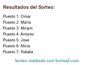 Resultados del sorteo: