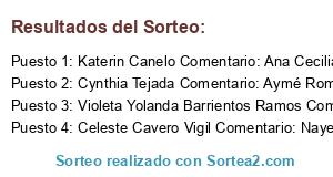 - Ganador 2: Cynthia Tejada Comentario: Aymé Román, Nathali Veronica Roman Roman, Fabiola Rodriguez Flores