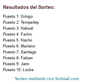Lista de participantes: Jairo, Locke, Nacho, Santiago, Facho, Nahuel, Fabian, Mariano, Gringo, Temperley.