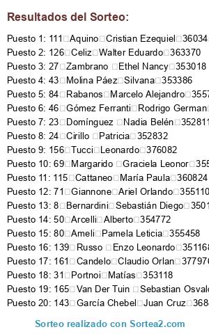 - Puesto 8: 260 Díaz Horacio Alejandro 397898