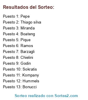 Lista de participantes: Ramos, Boateng, Thiago silva, Pepe, Godin, Chielini, Pique, Bonucci, Hummels, Barzagli, Kompany, Sokratis, Miranda.