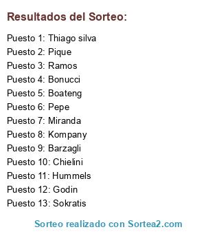 Lista de participantes: Ramos, Boateng, Thiago silva, Pepe, Godin, Chielini, Pique, Bonucci, Hummels, Barzagli, Kompany, Sokratis, Miranda.