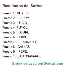 Lista de participantes: PUYOL,, FERDINAND,, CHIVU, , PEPE,, LUCIO, , MEXES, , TERRY, , CANNAVARO,, GALLAS, , TOURE.
