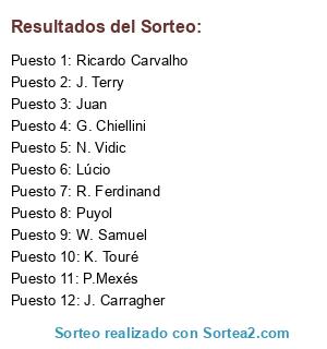 Lista de participantes: N. Vidic, Puyol, J. Terry, G. Chiellini, R. Ferdinand, W. Samuel, K. Touré, Lúcio, J. Carragher, P.Mexés, Juan, Ricardo Carvalho.