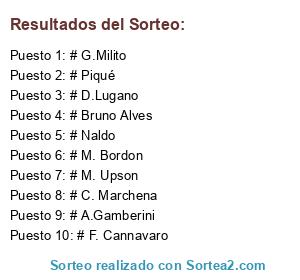 Lista de participantes: # Naldo, # Bruno Alves, # F. Cannavaro, # G.Milito, # M. Bordon, # C. Marchena, # D.Lugano, # M. Upson, # Piqué, # A.Gamberini.