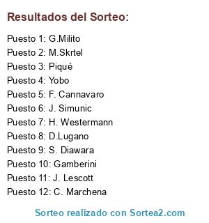 Lista de participantes: F. Cannavaro, H. Westermann, Gamberini, J. Lescott, C. Marchena, Yobo, D.Lugano, S. Diawara, M.Skrtel, G.Milito, Piqué, J. Simunic.