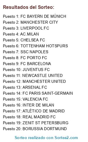 Lista de participantes: Alcorcon, Roma, Sabadell, Barcelona, Galatasaray, Hercules, Juventus, Malaga, Lazio, Betis, Espanyol, Madrid, Sevilla, Napoles, Sporting de Gijon, PSG, Wolfsburgo, La Palmas, Equipo 1, Equipo 2.