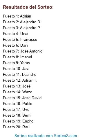 Resultados del sorteo: