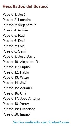 Lista de participantes: Alejandro D., Imanol, Alejandro P, Pablo, José, Jose David, Unai, Yeray, Adrián, Semi, Leandro, Enpho, Javi, Francisco, Raul, Adrián I., Jose Antonio, Wazo, Uve, Dani.