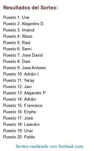 Lista de participantes: Alejandro D., Imanol, Alejandro P, Pablo, José, Jose David, Unai, Yeray, Adrián, Semi, Leandro, Enpho, Javi, Francisco, Raul, Adrián I., Jose Antonio, Wazo, Uve, Dani.