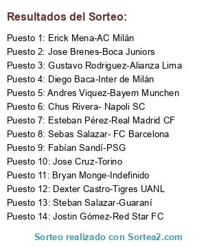 Lista de participantes: Esteban Pérez-Real Madrid CF, Jose Cruz-Torino, Andres Viquez-Bayern Munchen, Jose Brenes-Boca Juniors, Erick Mena-AC Milán, Chus Rivera- Napoli SC, Dexter Castro-Tigres UANL, Steban Salazar-Guaraní, Gustavo Rodriguez-Alianza Lima, Sebas Salazar- FC Barcelona, Diego Baca-Inter de Milán, Jostin Gómez-Red Star FC, Bryan Monge-Indefinido, Fabían Sandí-PSG.