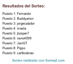 Lista de participantes: jorgecalador, Pippo, nano4099, Buddyamor, JaviGT, carlitosbrao, irrasta, jluisper7, Fernando.