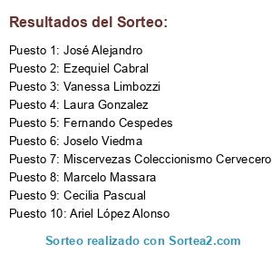 Lista de participantes: Laura Gonzalez, Antonio Brewer, Miscervezas Coleccionismo Cervecero, Daniela Belén Di Mascio, Vanessa Limbozzi , Nicolás A. Fernández, Cecilia Pascual, José Alejandro, Sergio Lemos, Marcelo Nicolas Braga, Marcelo Massara, Sebastian Pereira, Silvio Buba Gonzalez, Fernando Cespedes, Ezequiel Cabral, Marcela Carabajal , Diego Hernán Gutiérrez, Joselo Viedma , Maximiliano Gabriel Biagioni, Eduardo Canedo, Diego Ruesja, Maria Ibalo, Santiago Schroeder, María Soledad, Ezequiel Davidovich Caballero, Ariel López Alonso.