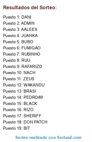 Resultados del sorteo: