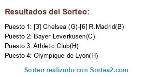 - Puesto 1: [3] Chelsea (G)-[6] R.Madrid(B)